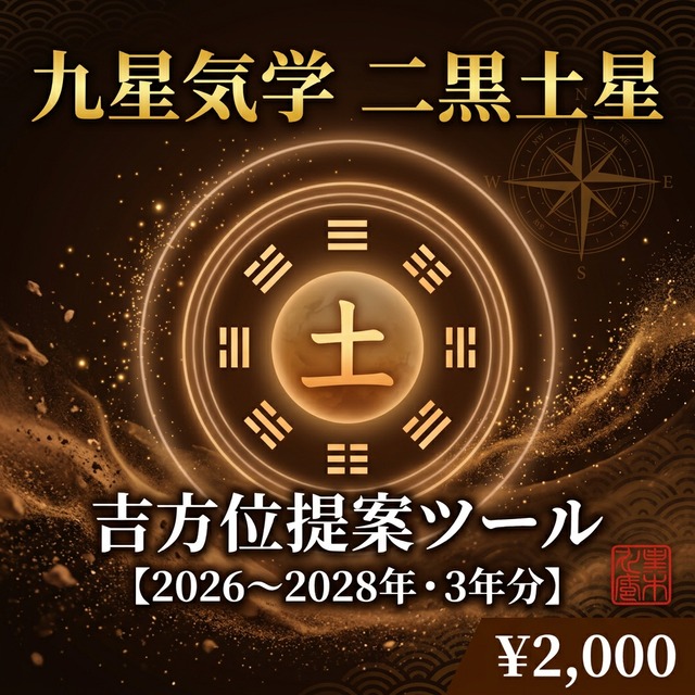 「今月、吉方位で旅行に行きたい。でも年盤・月盤・日盤を調べて、凶が重なっていないか確認して、その方向の目的地を探して……気づいたら1時間が過ぎていた」 そんな経験をなくすために作ったのが、このツールです。 本命星・二黒土星の方専用。出発地を選んで「計算」を押すだけで、吉方位・凶なし方位・その方向にある候補地までが一画面で揃います。インストール不要、HTMLファイル1本で完結します。 ▼ こんな方に選ばれています ・吉方旅行・引越しの計画に毎回時間をかけすぎていると感じている方 ・年盤・月盤・日盤の3つを手作業で照合することに限界を感じている方 ・「この日、この方位で行っていいか」をその場ですぐ判断したい方 ・九星気学を学んでいて、自分で判断できるツールを持ちたい方 ▼ このツールで変わること 【今まで】年盤サイトで確認 → 月盤サイトで確認 → 日盤サイトで確認 → 3つを頭の中で照合 → 凶が重なっていないか手動チェック → 地図で方向を確認 → 目的地を探す 【このツール導入後】出発地を選んで計算ボタンを押すだけ → 吉方位・凶なし・総合が日付別に一覧表示 → 方位バッジをクリックすると候補地が最寄りから最遠まで自動表示 ▼ 収録内容 ・対象期間:2026年1月1日〜2028年12月31日(3年分) ・スコープ:引越し・海外旅行向けの「年」から日帰り外出向けの「日」まで5段階 ・凶判定:五黄殺・暗剣殺・破(スコープ連動)・本命殺・相剋・水火殺を自動除外 ・計算結果:吉方位・凶なし・総合(吉かつ凶なし)の3グループで表示 ・候補地提案:該当方位の都市を最寄り〜最遠まで最大4件自動表示 ・方位検算:住所を入力すれば国土地理院APIで実際の方位角を確認可能 ・動作環境:PC・スマホ・タブレット(インターネット接続のあるモダンブラウザ) ▼ 他のサービスとの違い 無料の吉方位アプリは「今日の吉方位」を表示してくれますが、年盤・月盤・日盤の組み合わせ確認、凶の重複チェック、候補地の特定まで一括でできるものはほとんどありません。このツールは「いつ」「どこへ」の答えを、住所入力だけで完結させることを目的に設計しています。 節気・変遁日の計算はNASA JPL天体暦に基づく高精度な天文計算を採用。全1,096日・全スコープでCSVマスターデータとの100%一致を検証済みです。 ▼ 無料サンプルについて noteより2026年3〜5月分(3ヶ月分)を無料で配布しています。実際に操作感を確かめてからご購入ください。 ▼ ご注意・免責事項 ・本ツールは二黒土星(本命星)専用です。他の本命星は別商品をご確認ください。 ・九星気学の吉凶方位の判定基準は流派・解釈によって異なる場合があります。本ツールの計算結果が、お客様がご利用の流派や鑑定士の見解と一致しないことがあります。 ・本ツールはデジタルコンテンツであり、購入・ダウンロード後のキャンセル・返金・交換には一切応じられません。動作環境・内容をご確認の上ご購入ください。 ・本ツールの利用により生じた旅行・引越し・行動の結果について、当店は一切の責任を負いません。最終的な判断はお客様ご自身の責任においてお願いします。 ・住所検算機能は国土地理院APIを使用しており、API仕様変更により一部機能が利用できなくなる場合があります。 ・本ツールは日本国内の住所・方位を対象として設計されています。