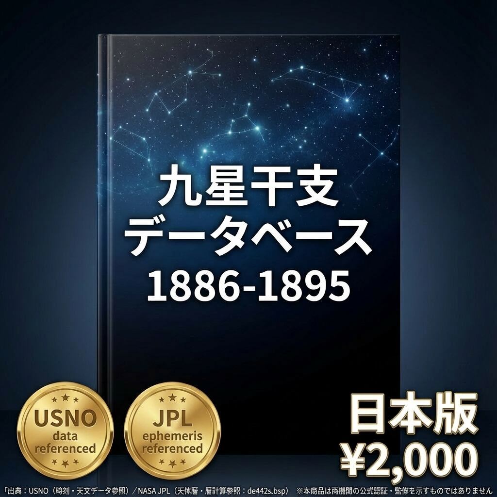 1886〜1895年の10年間・毎日の九星と干支を1行1日形式で収録したCSVデータです。明治後期。歴史上の人物の命式照合や統計研究にご活用ください。