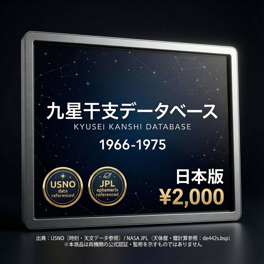 「この人、何年生まれだっけ?本命星はどの九星?」——占い師も研究者も、命式を作るたびに九星・干支を一から調べ直す手間があります。