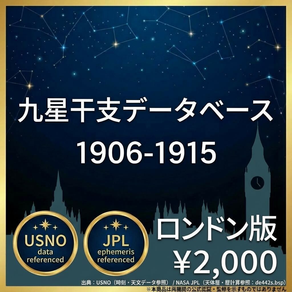 本データベースは、特定の計算方法に基づいています。その方法は科学的に妥当ですが、占術においては流派・伝統によって異なるロジックが存在します。