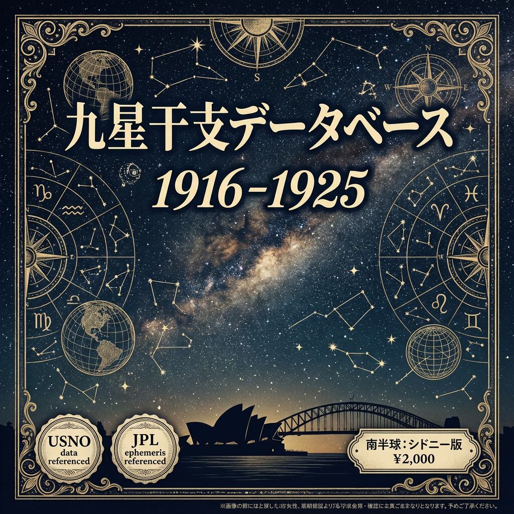 本データベースは、特定の計算方法に基づいています。その方法は科学的に妥当ですが、占術においては流派・伝統によって異なるロジックが存在します。