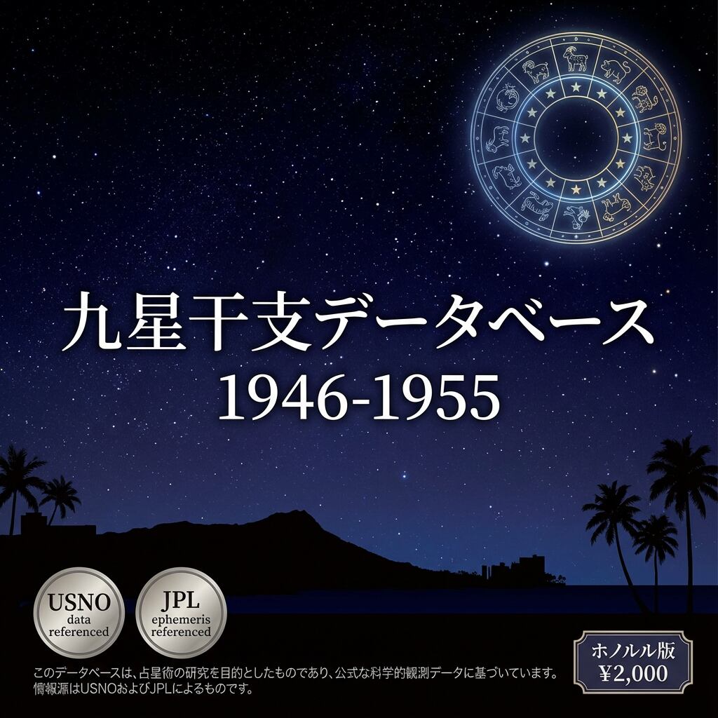 本データベースは、特定の計算方法に基づいています。その方法は科学的に妥当ですが、占術においては流派・伝統によって異なるロジックが存在します。