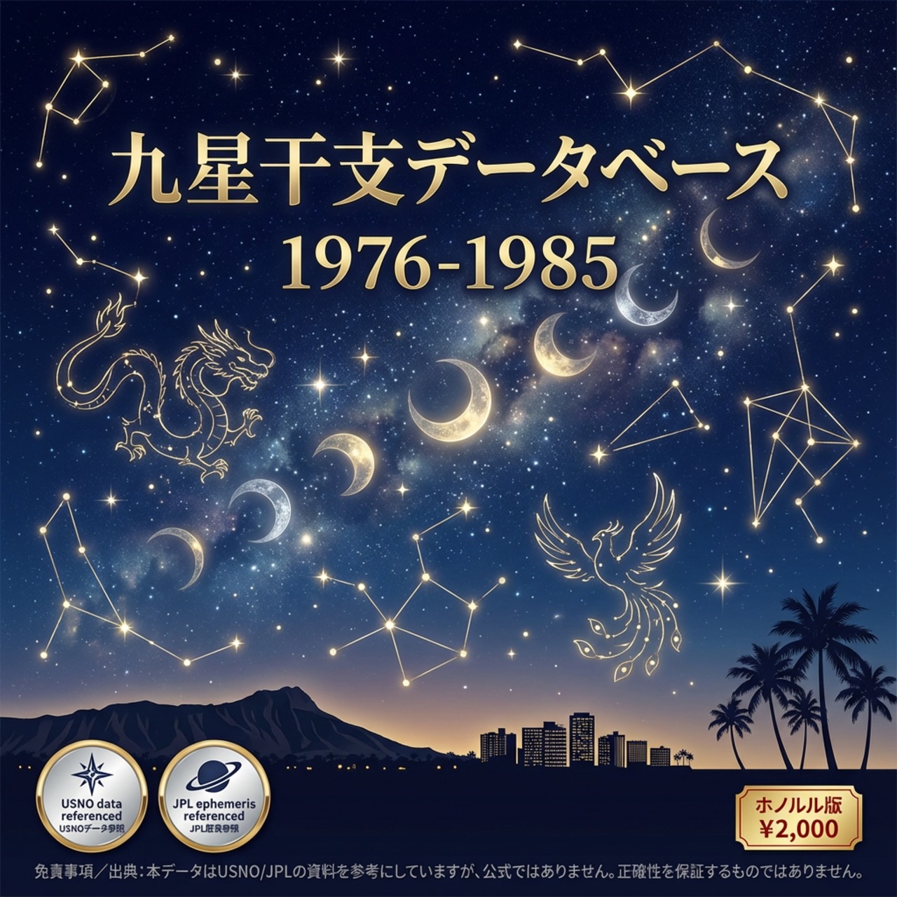 本データベースは、特定の計算方法に基づいています。その方法は科学的に妥当ですが、占術においては流派・伝統によって異なるロジックが存在します。