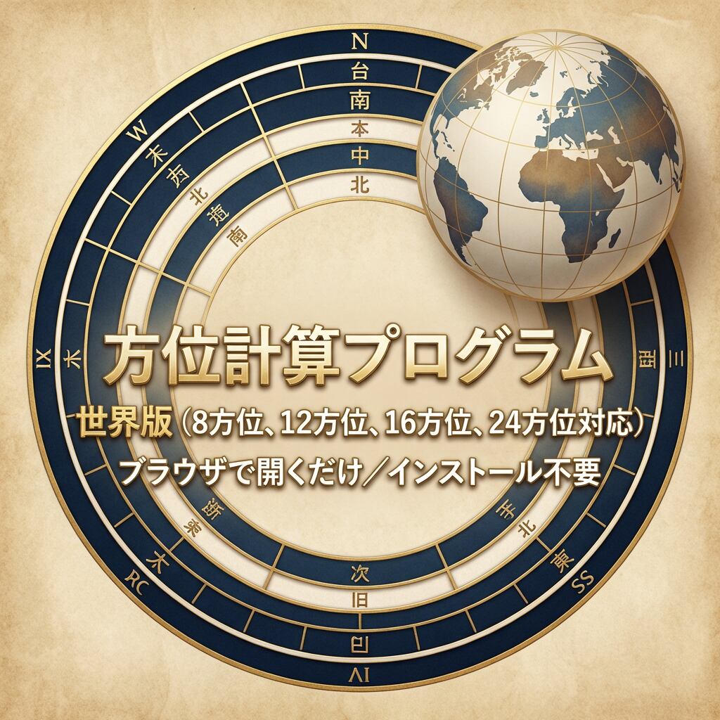・本ツールは方位角の計算補助を目的としており、吉凶の保証をするものではありません。